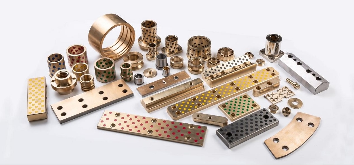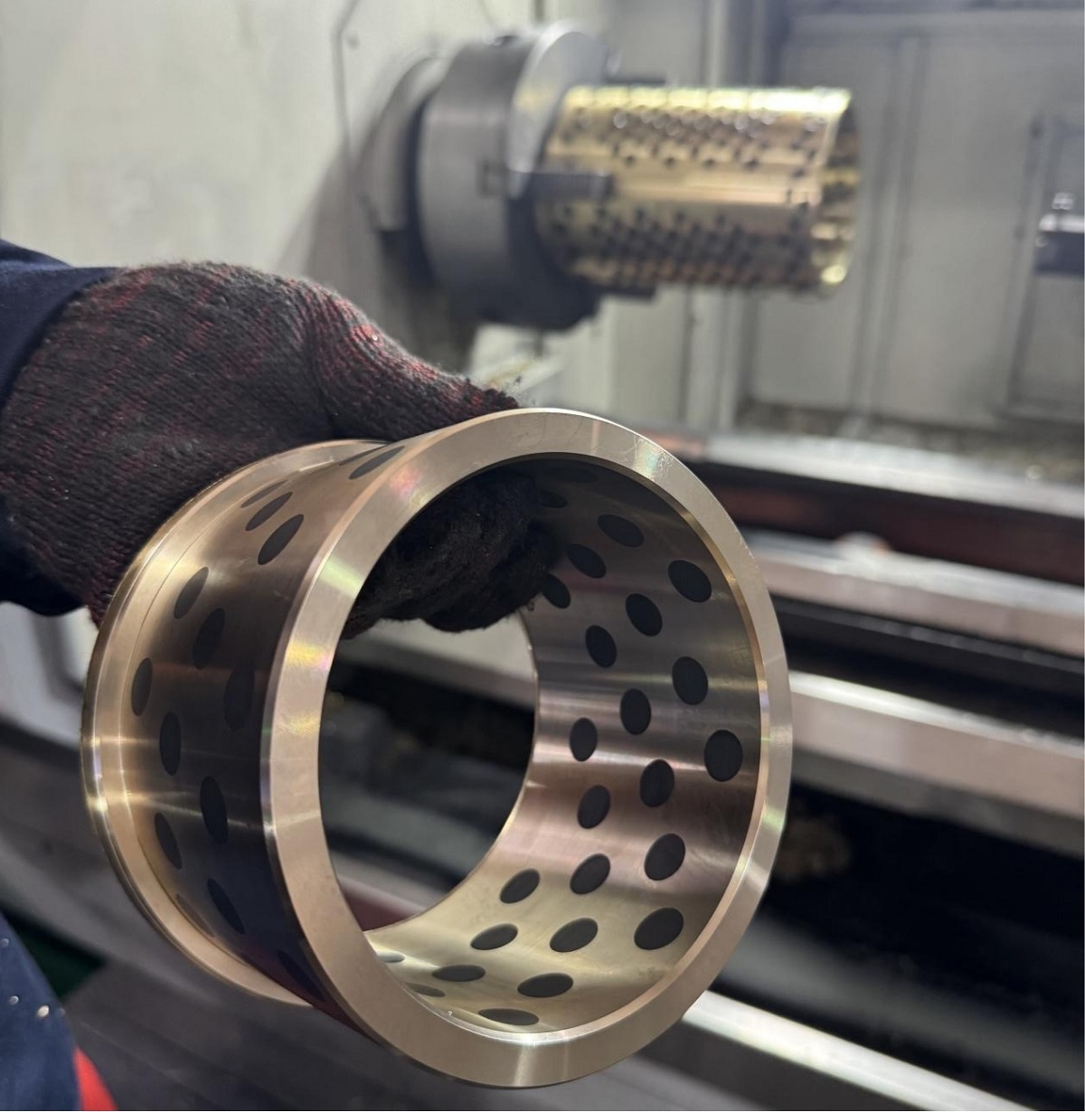 Materijali za samo-podmazivanje bakrene legure sastoje se od bakrene matrice ojačane legirajućim elementima poput TIN-a (SN) i aluminija (AL), zajedno s čvrstim mazivima poput grafita i molibdena disulfida (MOS₂). Tin povećava čvrstoću legure i koroziju, dok aluminij pomaže u formiranju gustih oksidnih filma kako bi se poboljšala performanse površine. Elementi poput olova također učinkovito optimiziraju tribološka svojstva.